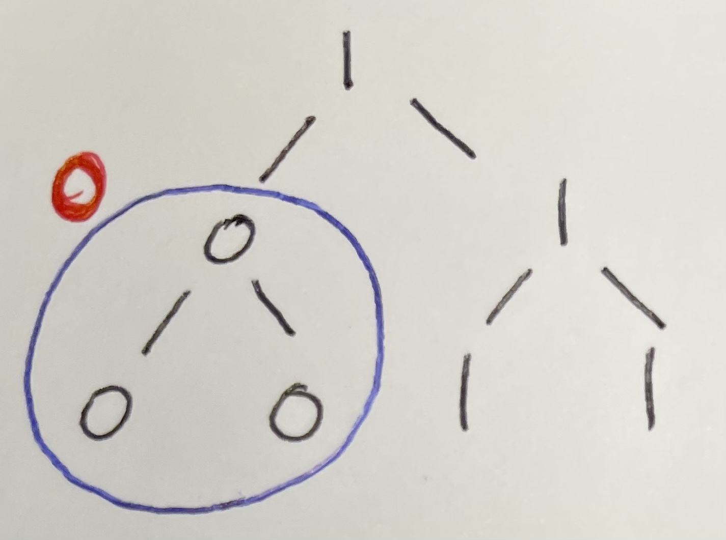 위와 같이 그려지기 때문입니다. 규칙 하나를 더 찾았습니다. '0이 1의 부모노드로 존재할 수 없다.' 또한, 그림을 직접 그려보면 트리를 왼쪽, 오른쪽 서브트리로 분할하고 정복해서 풀어야겠다는 느낌을 강하게 받을 수 있습니다. 그렇다면, 이제 어떻게 분할정복할지 알아보겠습니다.