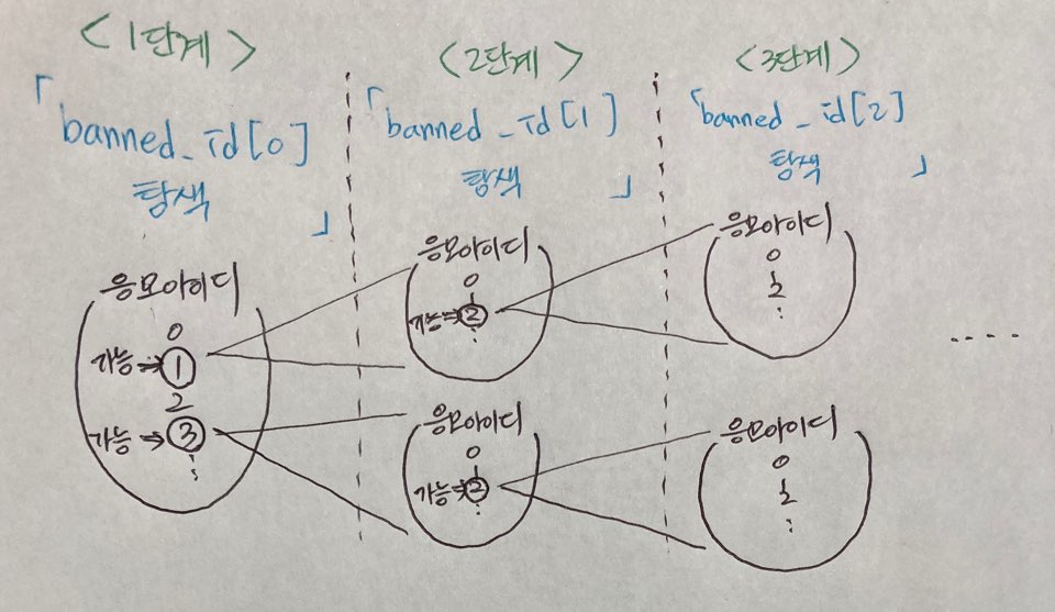 1. 제재 아이디가 가능한 모든 경우를 계산한다.