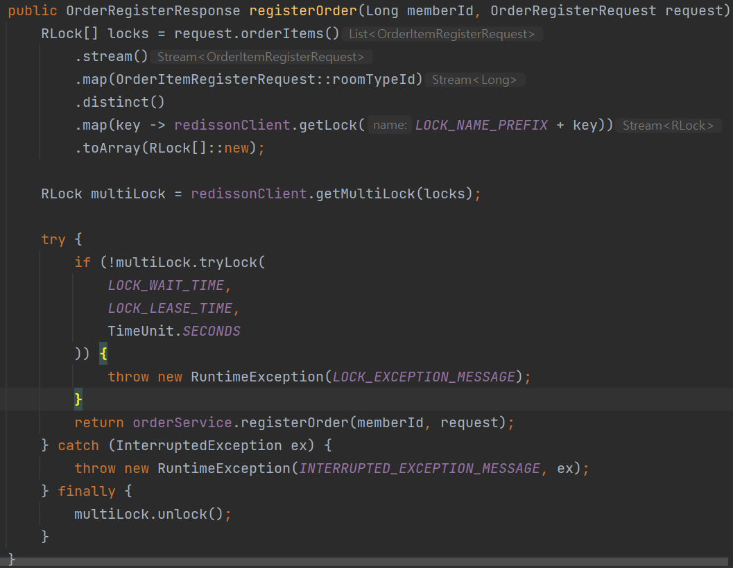 (3) 동시성 처리에 도전해 보았다. 이전 토이프로젝트에서는 QueryDSL이었다면, 이번에는 동시성처리에 도전해보았다. 처음에는 데이터소스를 분리해서 MySQL의 named lock을 이용해서 구현했지만, 이후에 KPT기간에 실제 현업에서 많이 사용하는 Redis의 redisson을 적용하는 것으로 리팩토링 함으로써 커머스 서비스의 구조를 엿볼 수 있었다. 사실, 야놀자 멘토님께서는 모든 객실을 야놀자에서 관리하지 않기 때문에 실제 야놀자는 동시성 처리는 하지 않는다고 들었습니다...