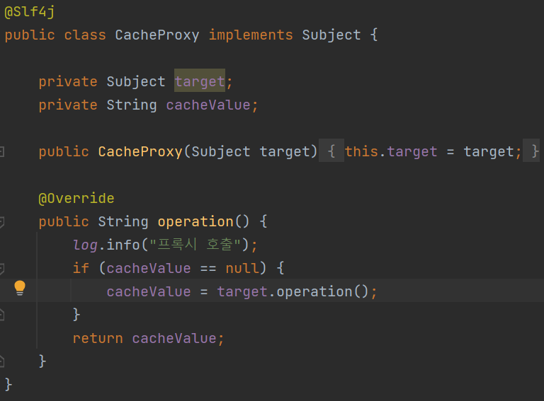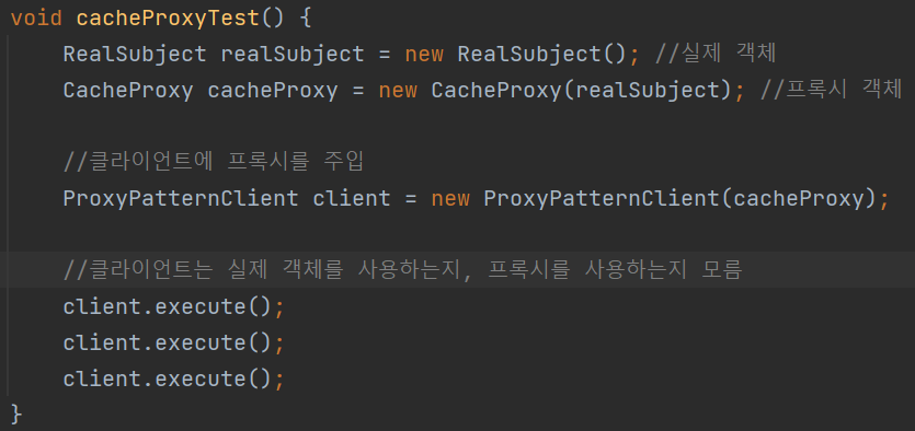 ② 프록시는 실제 서버를 필드로 갖고 있어서, 부가적인 일을 수행하는 도중에 실제 서버의 메서드를 호출함